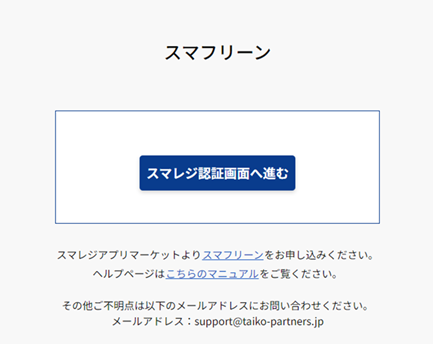 [スマレジ認証画面へ進む] ボタンをクリックしてください。 |