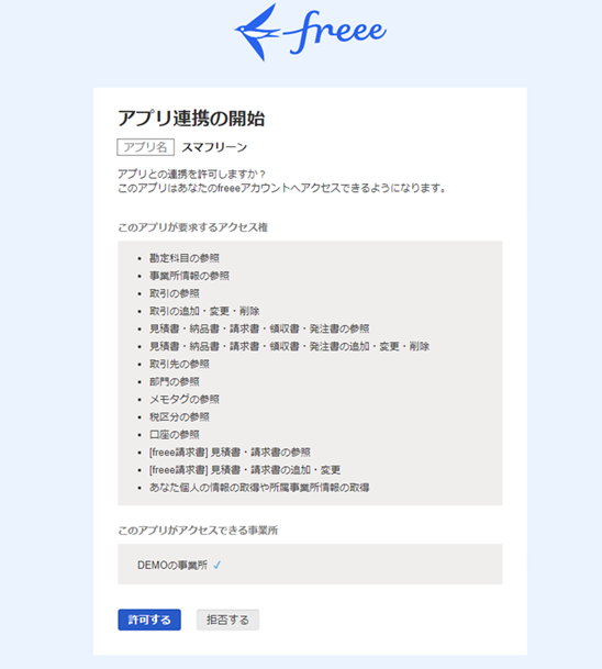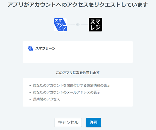 以下の画面が表示されますので、アプリとの連携を許可してください。 |