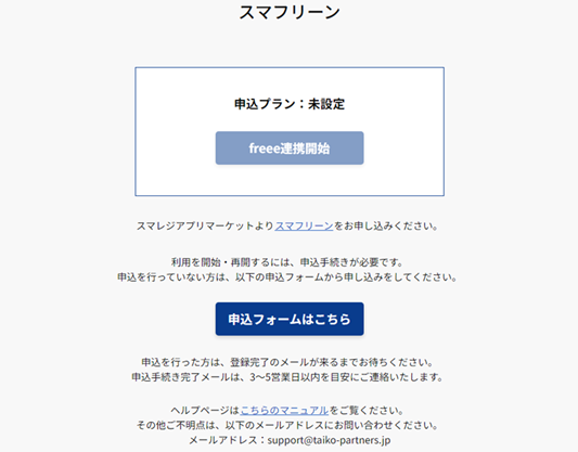 以下の画面で [freee連携開始] ボタンをクリックしてください。 |